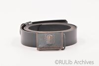 สายเข็มขัด และหัวเข็มขัดสีรมดำ สลักรูปหลักศิลาจารึก ตราสัญลักษณ์ของมหาวิทยาลัยรามคำแหง -