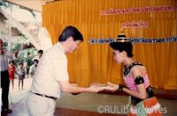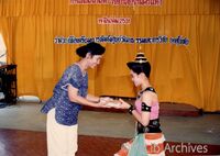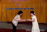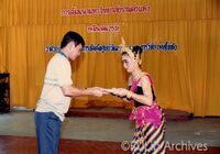 ผู้แทนคณาจารย์ และผู้เข้าร่วมสัมมนา มอบของที่ระลึกให้กับนักแสดง ระบำสุโขทัย ในการสัมมนาจัดตั้งศูนย์วัฒนธรรมและการวิจัยว่าด้วยยุคสุโขทัย ผู้แทนคณาจารย์ และผู้เข้าร่วมสัมมนา มอบของที่ระลึกให้กับนักแสดง ระบำสุโขทัย ในการสัมมนาจัดตั้งศูนย์วัฒนธรรมและการวิจัยว่าด้วยยุคสุโขทัย เมื่อวันที่ 19 มีนาคม 2531 ณ อุทยานประวัติศาสตร์สุโขทัย จังหวัดสุโขทัย -