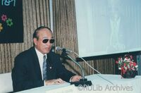 บุคคลในภาพ (เรียงจากซ้าย) 1) คุณสมมาตร ไพรหิรัญ 2) รองศาสตราจารย์คิม ไชยแสนสุข 3) ไม่ทราบชื่อ 4) รองศาสตราจารย์วัชรากรณ์ ชีวโศภิษฐ วิทยากรในการเสวนา “ผลสำเร็จจากรั้วราม” ในงานสัปดาห์ห้องสมุด ประจำปี 2530 ระหว่างวันที่ 27-31 กรกฎาคม 2530 ณ ห้องสมุดวิทยาเขตบางนา -