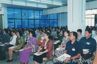 เจ้าหน้าที่อำนวยความสะดวก จำนวน 40 คน รับฟังการอบรมโครงการฝึกอบรม เรื่อง “การพัฒนาศักยภาพในการบำรุงรักษาสถานที่และทรัพยากรห้องสมุด" เมื่อวันที่ 30 พฤษภาคม 2533 ณ ห้องประชุม ชั้น 5 อาคาร 3 สำนักหอสมุดกลาง