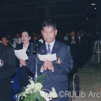 ตัวแทนนักศึกษา ขณะนำกล่าวในพิธีไหว้ครู คณะนิติศาสตร์ เมื่อวันที่ 7 สิงหาคม 2545