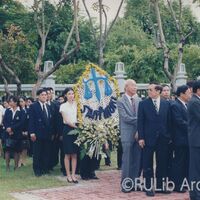 คณาจารย์และตัวแทนนักศึกษา คณะนิติศาสตร์ มหาวิทยาลัยรามคำแหง วางพวงมาลาเนื่องในวันรพี (ไม่ปรากฏปีที่ถ่ายภาพ) ณ ศาลฎีกา แขวงพระบรมมหาราชวัง เขตพระนคร กรุงเทพฯ