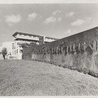 ป้ายชื่อมหาวิทยาลัยรามคำแหง ติดตั้งบริเวณประตูทางเข้าด้านหน้ามหาวิทยาลัยรามคำแหง (ไม่ปรากฎปีที่ถ่ายภาพ)
