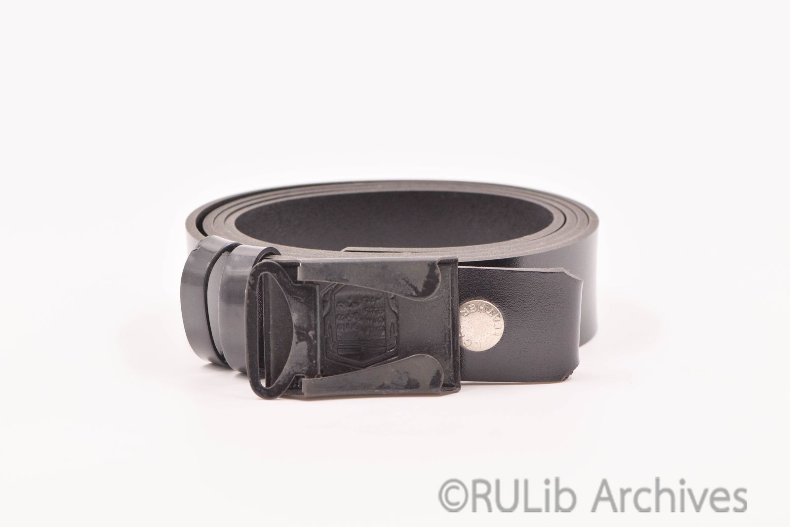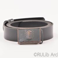 สายเข็มขัด และหัวเข็มขัดสีรมดำ สลักรูปหลักศิลาจารึก ตราสัญลักษณ์ของมหาวิทยาลัยรามคำแหง