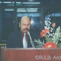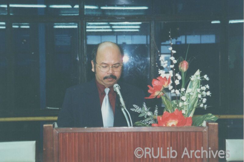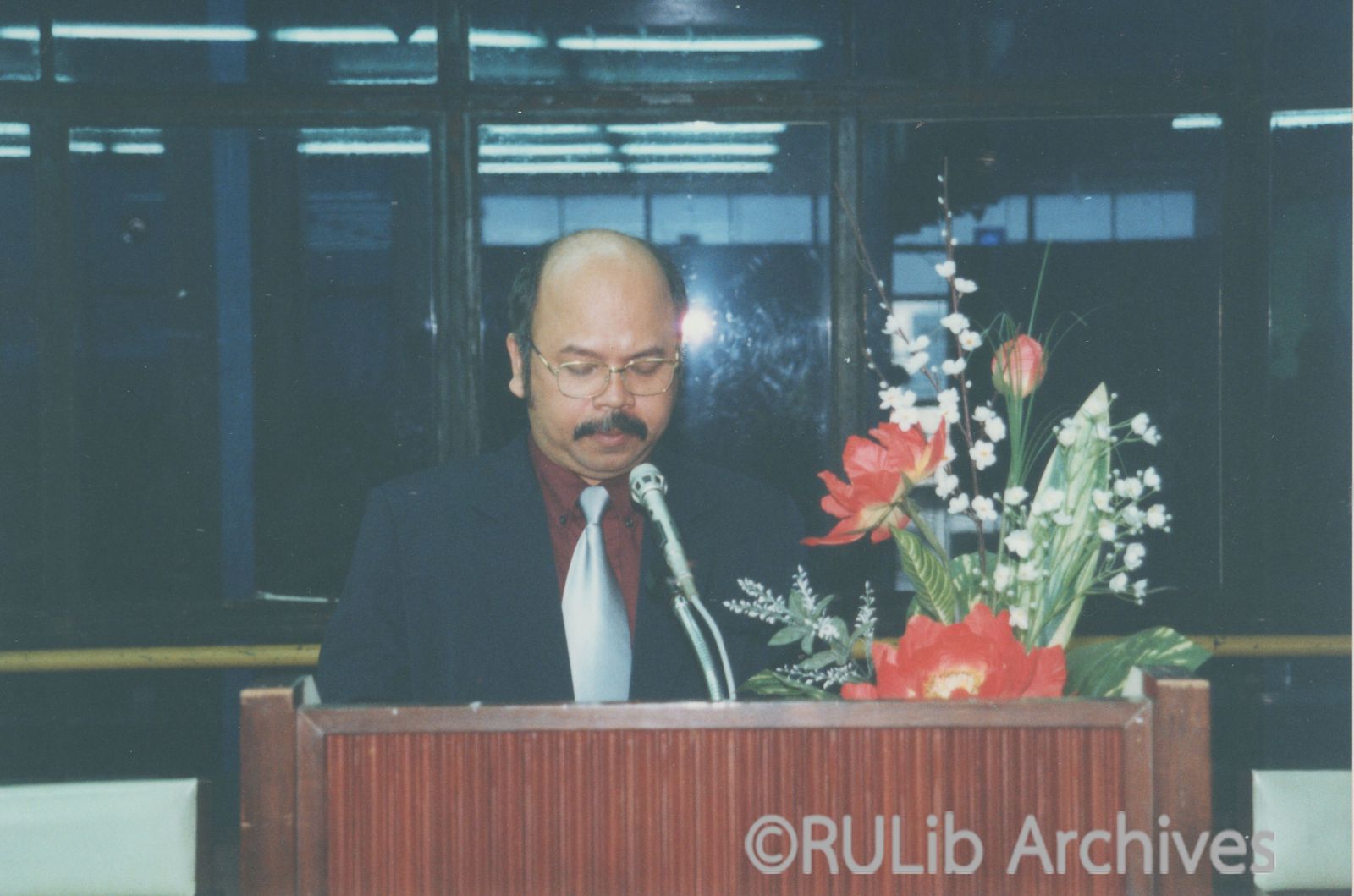รองศาสตราจารย์ทศพร คล้ายอุดม ผู้อำนวยการสำนักหอสมุดกลาง ขณะกล่าวในการฝึกอบรม เรื่อง “การประกันคุณภาพในห้องสมุดสถาบันอุดมศึกษา” เมื่อวันที่ 27 กุมภาพันธ์ 2544 ณ ห้องประชุม ชั้น 5 อาคาร 3 สำนักหอสมุดกลาง มหาวิทยาลัยรามคำแหง