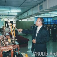 ศาสตราจารย์รังสรรค์ แสงสุข อธิการบดีมหาวิทยาลัยรามคำแหง ขณะกล่าวเปิดงานในการฝึกอบรม เรื่อง “การประกันคุณภาพในห้องสมุดสถาบันอุดมศึกษา” เมื่อวันที่ 27 กุมภาพันธ์ 2544 ณ ห้องประชุม ชั้น 5 อาคาร 3 สำนักหอสมุดกลาง มหาวิทยาลัยรามคำแหง
