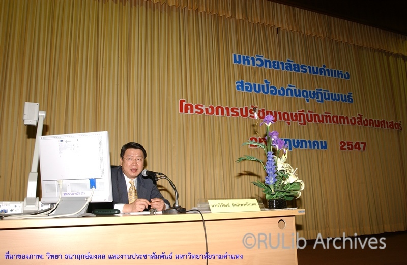 นายวิวัฒน์ กิตติพงศ์โกศล นักศึกษาระดับปริญญาเอก สาขาบริหารธุรกิจ กำลัง present ดุษฎีนิพนธ์ของตนเอง ในหัวข้อ "ตัวแบบข้อเสนอคุณค่าทางการตลาดแบบบูรณาการ สำหรับวิสาหกิจขนาดย่อมไทย: ผลิตภัณฑ์อาหารสำเร็จรูป" ให้คณะกรรมการสอบฯ ได้พิจารณา ในการสอบป้องกัน (Defense Examination) ดุษฎีนิพนธ์ โครงการปรัชญาดุษฎีบัณฑิตทางสังคมศาสตร์ มหาวิทยาลัยรามคำแหง เมื่อวันที่ 25 พฤษภาคม 2547 ช่วงเวลา 09.30-12.30 น.