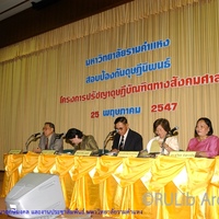 คณะกรรมการการสอบป้องกัน (Defense Examination) ดุษฎีนิพนธ์ กำลังให้ข้อคิดเห็น ภายหลังการรับฟังการ present ของน.ส.ปัทมา มีครองธรรม นักศึกษาระดับปริญญาเอก สาขาสังคมวิทยา ในหัวข้อ "ความผูกพันกับองค์กร แรงจูงใจ ความพึงพอใจในงานและผลการปฏิบัติงานของข้าราชการสำนัก" เมื่อวันที่ 25 พฤษภาคม 2547 ช่วงเวลา 13.30-16.30 น.