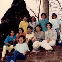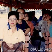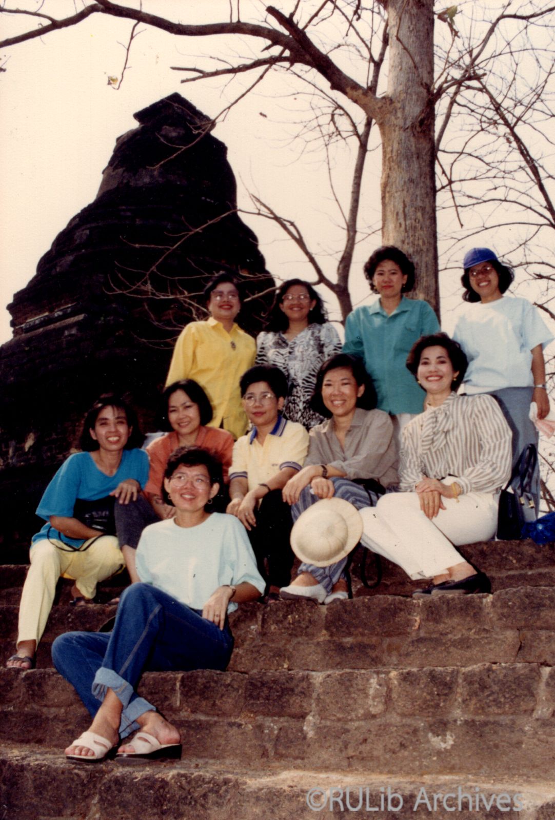 อาจารย์ ข้าราชการ เจ้าหน้าที่ มหาวิทยาลัยรามคำแหง ถ่ายรูปร่วมกันขณะชมโบราณสถานอุทยานประวัติศาสตร์สุโขทัย และชมผังจำลองของเมืองโบราณสุโขทัย ในการสัมมนาการเตรียมการจัดตั้งศูนย์วัฒนธรรมและการวิจัยว่าด้วยยุคสุโขทัย เมื่อวันที่ 19 มีนาคม 2531 ณ อุทยานประวัติศาสตร์สุโขทัย จังหวัดสุโขทัย
