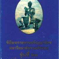 กรรมการสภามหาวิทยาลัยรามคำแหง -- คณะผู้บริหารมหาวิทยาลัยรามคำแหง -- สำเนาพระราโชวาท สมเด็จพระเทพรัตนราชสุดาฯ สยามบรมราชกุมารี ในพิธีพระราชทานปริญญาบัตรแก่ผู้สำเร็จการศึกษาจากมหาวิทยาลัยรามคำแหง ณ อาคารหอประชุมพ่อขุนรามคำแหงมหาราช วันที่ 8-11 มกราคม 2539 -- คำกราบบังคมทูล ของ ศาสตราจารย์ประภาศน์ อวยชัย นายกสภามหาวิทยาลัยรามคำแหง อ่านคำประกาศราชสดุดีเฉลิมพระเกียรติคุณ พระบาทสมเด็จพระปรมินทรมหาภูมิพลอดุลยเดชฯ ปริญญาปรัชญาดุษฎีบัณฑิตกิตติมศักดิ์ สาขาวิชาปรัชญา และสดุดีพระเกียรติคุณ สมเด็จพระเทพรัตนราชสุดาฯ สยามบรมราชกุมารี ปริญญาปรัชญาดุษฎีบัณฑิตกิตติมศักดิ์ สาขาวิชารัฐศาสตร์ ในพิธีพระราชทานปริญญาบัตรของมหาวิทยาลัยรามคำแหง ณ อาคารหอประชุมพ่อขุนรามคำแหงมหาราช วันที่ 27 มกราคม 2540 -- คำกราบบังคมทูล ของ ศาสตราจารย์ประภาศน์ อวยชัย นายกสภามหาวิทยาลัยรามคำแหง สดุดีเกียรติคุณ ผู้ได้รับพระราชทานปริญญากิตติมศักดิ์ ในพิธีพระราชทานปริญญาบัตรแก่ผู้สำเร็จการศึกษา ประจำปีการศึกษา 2538 วันที่ 27-29 มกราคม 2540 -- คำกราบบังคมทูล ของ รองศาสตราจารย์รังสรรค์ แสงสุข อธิการบดีมหาวิทยาลัยรามคำแหง ถวายรายงานกิจการของมหาวิทยาลัยรามคำแหง ในพิธีพระราชทานปริญญาบัตรแก่ผู้สำเร็จการศึกษา ประจำปีการศึกษา 2538 ณ อาคารหอประชุมพ่อขุนรามคำแหงมหาราช วันที่ 27-29 มกราคม 2540 -- กำหนดการ -- คำปฏิญาณของบัณฑิต -- รายชื่อผู้สำเร็จการศึกษา ประจำปีการศึกษา 2538 -- ข้อมูลบัณฑิต รุ่นที่ 22 ประจำปีการศึกษา 2538 -- คณะกรรมการสภามหาวิทยาลัยรามคำแหง -- รายนามคณบดีและผู้อำนวยการสำนัก -- บัณฑิตกิตติมศักดิ์ของมหาวิทยาลัยรามคำแหง -- พระนามและรายนามผู้เข้ารับพระราชทานปริญญากิตติมศักดิ์ ประจำปีการศึกษา 2538 -- คณะกรรมการฝ่ายจัดทำหนังสือที่ระลึก สูจิบัตร และบัตรเชิญ