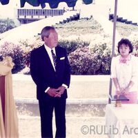 ฯพณฯ นายกรัฐมนตรี พลเอกชาติชาย ชุณหะวัณ (ชายสวมสูท) ขณะยืนรอมอบโล่เกียรติคุณแก่ ผู้มาร่วมงานในพิธีเปิดงานวันนัดพบแรงงานครั้งที่ 9 โดยมี นางลีนา ลิ่มอภิชาต พิธีกรในงานร่วมด้วย เมื่อวันที่ 27 มีนาคม 2532 ณ ลานพระบรมรูปพ่อขุนรามคำแหงมหาราช