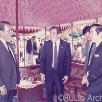 ายวัฒนา อัศวเหม (บุคคลลำดับที่ 2 จากซ้าย) รัฐมนตรีช่วยว่าการกระทรวงมหาดไทย ในฐานะประธานคณะกรรมการอำนวยการจัดงานวันนัดพบแรงงาน ครั้งที่ 9 ขณะเตรียมงานกับ รองศาสตราจารย์ ดร.ธรรมนูญ โสภารัตน์ (บุคคลแรกจากขวา) พร้อมด้วยคณะกรรมการจัดงาน ณ บริเวณลานพระบรมรูปพ่อขุนรามคำแหงมหาราช มหาวิทยาลัยรามคำแหง ในวันที่ 27 มีนาคม 2532 ณ ลานพระบรมรูปพ่อขุนรามคำแหงมหาราช