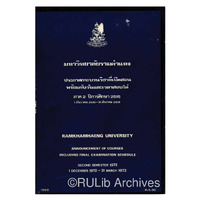 ประกาศกระบวนวิชาที่เปิดสอน พร้อมกับวันและเวลาสอบไล่ ภาค 2 ปีการศึกษา 2515 1 ธันวาคม – 31 มีนาคม 2516