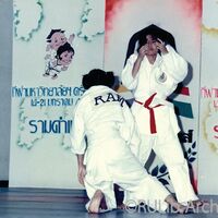 ภาพขณะแข่งขันเทควันโดหญิง ระหว่างมหาวิทยาลัยรามคำแหงและคู่แข่งขัน ในกีฬามหาวิทยาลัย ครั้งที่ 24 หัวหมากเกมส์