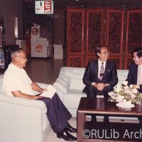 ฯพณฯ ดร.สุบิน ปิ่นขยัน รัฐมนตรีว่าการทบวงมหาวิทยาลัย ประธานเปิดงาน (สวมสูทซ้ายมือ) โดยมี ศาสตราจารย์ ดร.ธรรมนูญ โสภารัตน์ อธิการบดีมหาวิทยาลัยรามคำแหง (สวมสูทขวามือ) ให้การต้อนรับ เมื่อวันที่ 11 พฤษภาคม 2531 ณ ศูนย์การค้าเซ็นทรัล พลาซ่า แขวงลาดพร้าว ชั้น 1