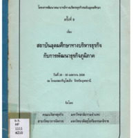 การสัมมนาคณาจารย์ทางบริหารธุรกิจระดับอุดมศึกษาทั่วประเทศ -- โครงการสัมมนาเรื่อง สถาบันอุดมศึกษาทางบริหารธุรกิจ กับการพัฒนาธุรกิจภูมิภาค -- กำหนดการสัมมนา -- รายชื่อผู้เข้าร่วมสัมมนา -- รายชื่อผู้เข้าร่วมสัมมนากลุ่มย่อย -- พิธีเปิดการสัมมนา -- การอภิปราย เรื่อง ยุทธศาสตร์การพัฒนาธุรกิจ -- การอภิปราย เรื่อง การติดต่อค้าขายกับประเทศกลุ่มอินโดจีน -- ปาฐกถาพิเศษ โดย ท่านเอกอัครรัฐทูตสาธารณรัฐประชาธิปไตยประชาชนลาว -- รายงานการสัมมนากลุ่มย่อย -- บทสรุป