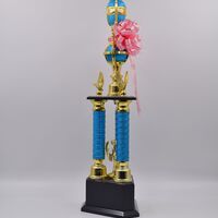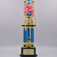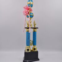 ถ้วยรางวัลพลาสติก 3 เสา (สีฟ้า) ขนาด 6.7 x 25.3 นิ้ว