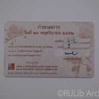 - บัตรเข้าร่วมงานครบรอบ 38 ปี มหาวิทยาลัยรามคำแหง จัดทำโดยสมาคมมหาวิทยาลัยรามคำแหง