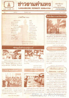 ข่าวรามคำแหง ปีที่ 09 ฉบับที่ 21 ข่าวรามคำแหง ปีที่ 9 ฉบับที่ 21 วันที่ 22 กันยายน 2522 จำนวน 8 หน้า ราคา 75 สตางค์ หน้า 1 - ข่าวผลการประชุมทางวิชาการของคณะนิติศาสตร์ (มีภาพประกอบ จำนวน 1 ภาพ), ข่าววันไหว้ครู โดย ลีนา วิวัฒน์วรพันธ์ และบุญเกียรติ ศรีมาลานนท์ (มีภาพประกอบ จำนวน 2 ภาพ), เรื่องเปลี่ยนแปลงเวลาออกอากาศคำบรรยายทางสถานีโทรทัศน์, เรื่องการเปิดสอนกระบวนวิชาเพิ่มเติม ภาค 1 ปีการศึกษา 2522, ข่าวคณะอาจารย์ มศว.บางเขน เยี่ยมชม ม.ร. โดย ลีนา วิวัฒน์วรพันธ์ และบุญเกียรติ ศรีมาลานนท์ (มีภาพประกอบ จำนวน 1 ภาพ), เรื่องการเปลี่ยนแปลงชื่ออาจารย์ผู้บรรยาย ภาค 1 ปีการศึกษา 2522, เรื่องผลการพิจารณาคัดเลือกทุนการศึกษาประเภทเรียนดี หน้า 2 - ข่าวเลือกตั้งกรรมการสภาอาจารย์, ข่าวผลการแข่งขันเทเบิลเทนนิส, ตำราออกใหม่ในรอบสัปดาห์, เรื่องการเปลี่ยนแปลงชื่ออาจารย์ผู้บรรยาย ภาค 1 ปี 2522, ตารางทบทวนวิชาปีที่ 1, ประกาศเรื่องวิชาโทสื่อมวลชน, ข่าวเชิญประชุม, เรื่องการสอบฟัง (Listening Exam วิชา EN300) โดย ศิริกันยา นาคะวิสุทธิ์, เรื่องการสอบฟัง (Listening Exam วิชา EN301) โดย พัชรี พลาวงศ์ หน้า 3 - ข่าวจากกระบวนวิชา LI393 โดย อุทัย ภิรมรื่นย์, ข่าวจากกระบวนวิชา LI332 โดย น้อมนิจ วงศ์สุทธิธรรม, ข่าวจากกระบวนวิชา TH354 โดย น้อมนิจ วงศ์สุทธิธรรม, ข่าวจากกระบวนวิชา TH231 โดย น้อมนิจ วงศ์สุทธิธรรม, ข่าวจากกระบวนวิชา MC467 โดย วิษณุ สุวรรณเพิ่ม หน้า 4 - ข่าวจากกระบวนวิชา TH480 โดย บุปผา ทวีสุข, ข่าวจากกระบวนวิชา PS315 โดย โกศล โรจนพันธุ์, ข่าวจากกระบวนวิชา AV223 โดย เกื้อกูล คุปรัตน์, ข่าวจากกระบวนวิชา AV325 โดย โสภาพรรณ สุวรรณแสง, ข่าวจากกระบวนวิชา AV328 โดย โสภาพรรณ สุวรรณแสง, ข่าวจากกระบวนวิชา AV343 โดย อนันต์ธนา อังกินันทน์, ข่าวจากกระบวนวิชา AV342 โดย สมคิด ธีรศิลป์ หน้า 5 - บทความเรื่อง ความมึนเมาไม่ทำให้พ้นผิด โดย สุรชัย สุวรรณปรีชา, บทความเรื่อง ศิลปะของการเป็นผู้บริหารงานห้องสมุดที่ดี โดย อัมพร ปั้นศรี หน้า 6 - ศิลปะของการเป็นผู้บริหารงานห้องสมุดที่ดี (ต่อจากหน้า 5), ข่าวจากกระบวนวิชา TH256 โดย ประทีป วาทิกทินกร, ข่าวจากกระบวนวิชา TH356 โดย ประทีป วาทิกทินกร, ข่าวจากกระบวนวิชา PS415 โดย เสถียร หอมขจร, ข่าวจากกระบวนวิชา LA130 โดย เชิญ โกศิน หน้า 7 - ข่าวจากกระบวนวิชา AV342 (ต่อจากหน้า 4), ข่าวจากกระบวนวิชา AV432 โดย ร่วมศักดิ์ แก้วปลั่ง, ข่าวจากกระบวนวิชา MA103 โดย มานัส บุญยัง, ข่าวจากกระบวนวิชา LA451 โดย วีระ โชคเหมาะ, ข่าวจากกระบวนวิชา HI222 โดย วิไลเลขา ถาวรธนสาร และสิริรัตน์ ฆันธพิน, ข่าวจากกระบวนวิชา EN401 โดย พิมพาภรณ์ เจริญพานิช หน้า 8 - ข่าวผลการประชุมฯ (ต่อจากหน้า 1), เรื่องเปิดสอนกระบวนวิชา (ต่อ
