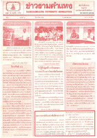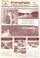 ข่าวรามคำแหง ปีที่ 10 ฉบับที่ 06 ข่าวรามคำแหง ปีที่ 10 ฉบับที่ 6 วันที่ 7 มิถุนายน 2523 จำนวน 8 หน้า ราคา 75 สตางค์ หน้า 1 - ภาพ รศ.จรินทร์ ธานีรัตน์ มอบงานแก่ ผศ.ร่วมศักดิ์ แก้วปลั่ง ประชาสัมพันธ์ชุดใหม่, ภาพ ผศ.ประทีป วาทิกทินกร มอบงานแก่ อ.อภัสสร์ จันทวิมล บก.ขร.คนใหม่, แต่งตั้งคณะกรรมการประชาสัมพันธ์ ตามคำสั่งมหาวิทยาลัยรามคำแหง ที่ 567/2522, ศ.ดร.ศักดิ์ ผาสุขนิรันด์ อธิการบดี ตรวจเยี่ยมการรับสมัคร นศ.ใหม่ ของคณะนิติศาสตร์, ข่าวจากฝ่ายทะเบียนฯ คณะนิติศาสตร์, ผลการเลือกตั้งกรรมการประจำคณะ และผู้ทำหน้าที่หัวหน้าภาค , ประกาศมหาวิทยาลัยรามคำแหง เรื่อง การสอบเทียบระดับความรู้ ภาษาฝรั่งเศสทั่วไป ภาค 1 ปีการศึกษา 2523 หน้า 2 - คำชี้แจงและหลักเกณฑ์การขอหนังสือสำคัญของนักศึกษา คณะนิติศาสตร์, บทความเรื่อง ท่านจะปฎิบัติอย่างไรเมื่อท่านมีอารมณ์เครียด โดย มลวิภา ถิ่นว่อง หน้า 3 - บทความเรื่อง อันเกี่ยวกับวรรณคดี โดย เยาวลักษณ์ ธันธนาพรชัย คณะมนุษยศาสตร์, บทความเรื่อง อารมณ์และฮอร์โมน โดย ยงยศ มนต์เสรีนุสรณ์ คณะวิทยาศาสตร์ หน้า 4 - วิเคราะห์ปัญหา: ทำไมนักศึกษามหาวิทยาลัยรามคำแหง สอบตำวิชาการใช้ห้องสมุดกันมาก โดย นรินทร์ บุญชู หน้า 5 - บทความเรื่อง การพัฒนาชนบทแบบผสมผสาน โดย วีรพรรณ กาญจนะจิตรา คณะมนุษยศาสตร์, วิเคราะห์ปัญหา (ต่อจากหน้า 4), ข่าวรับสมัครงาน หน้า 6 - บทความเรื่อง เรียนประวัติศาสตร์ไปทำไม โดย ปราณี ศิริจันทพันธ์ คณะมนุษยศาสตร์, บทความเรื่อง หน้าต่าง 4 บาน ของ Joha โดย จำเนียร ช่วงโชติ คณะศึกษาศาสตร์ หน้า 7 - หน้าต่าง 4 บาน (ต่อจากหน้า 6) หน้า 8 - คอลัมน์หยุดคิดอาทิตย์ละครั้ง, หน้าต่าง 4 บาน (ต่อจากหน้า 7), ผลการเลือกตั้งฯ (ต่อจากหน้า 1), ประกาศ ม.ร. (ต่อจากหน้า 1), คอลัมน์จากบรรณาธิการ -