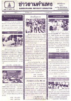 ข่าวรามคำแหง ปีที่ 29 ฉบับที่ 06 ข่าวรามคำแหง ปีที่ 29 ฉบับที่ 06 วันที่ 7-13 มิถุนายน 2542 วันที่ 27 เมษายน 2535 จำนวน 12 หน้า ราคา 75 สตางค์ หน้า 1 - ข่าวม.ร.รับนศ.ใหม่ส่วนภูมิภาค 8-12 มิ.ย.นี้ สาขาวิทยฯ สุโขทัยเปิดรับนศ.รุ่นแรก, บทกลอนต้องรับนักศึกษาใหม่ โดย อัธยา โกมลกาญจนา, ข่างจบม.3เรียนรามฯได้ รับสมัคร 14-23 มิ.ย.นี้ เมื่อมีวุฒิม.6 แล้ว ขอโอนผลการเรียนไปใช้ได้เลย, ข่าวม.ร.จัดอบรมการแปล, ข่าวเปลี่ยนแปลงหมายเลขโทรศัพท์ บริการข้อมูลข่าวสารและอินเตอร์เน็ท หน้า 2 - บทความเรื่อง อดีต ส.ส.,ส.ว.และสมาชิกสภาท้องถิ่น หากมีวุฒิยังไม่ถึงม.6 สมัครเป็นนศ.ชั้นป.ตรีได้, คอลัมน์สรุปข่าวในรอบสัปดาห์, หน้า 3 - สัมภาษณ์อ.สุชาติ กิจธนะเสรี ผู้อำนวนการสถาบันคอมพิวเตอร์ม.ร., คอลัมน์บทบรรณาธิการ โดย ประทีป วาทิกทินกร หน้า 4 - คอลัมน์สาระน่ารู้อาหารและยา ตอน อาหารกึ่งสำเร็จรูป, คอลัมน์กฎหมายใกล้ตัว ตอน ควรเพิ่มค่าลดหย่อนดอกเบี้ยเงินกู้ยืมเพื่อที่อยู่อาศัย โดย เพิ่มบุณ แก้วเขียว, ข่าวรองศาสตราจารย์วิษณุ สุวรรณเพิ่ม มอบกระเช้าแสดงความยินดีเนื่องในโอกาสที่หนังสือพิมพ์บ้านเมืองครบรอบ 27 ปี (มีภาพประกอบจำนวน 1 ภาพ) หน้า 5 - บทความเรื่อง English Tips โดย ส่องศรี โตประเสริฐ, บทความเรื่อง จิตสำนึกชาวรามคำแหง โดย น้ำผึ้ง ปูรณะสุคนธ หน้า 6 - บทความเรื่อง การขยายโอกาสทางการศึกษาระดับอุดมศึกษาสู่ภูมิภาคของมหาวิทยาลัยรามคำแหง : ศึกษาเฉพาะกรณีสาขาวิทยบริการเฉลิมพระเกียรติ จังหวสัดปราจีนบุรี โดย เฉลิมเผ่า อจละนันท์ หน้า 7 - การขยายโอกาส (ต่อจากหน้า 6) หน้า 8 - บทความเรื่อง ประสบการณ์ในประเทศเยอรมันจากการไปศึกษาอบรมด้านพฤกษศาสตร์ โดย มาฑมาส สุทธาชีพ หน้า 9 - คอลัมน์ตอบปัญหานักศึกษา โดย กองบรรณาธิการ, ข่าวรับสมัครงาน, โทรทัศน์การศึกษา มหาวิทยาลัยรามคำแหง หน้า 10 - ข่าวม.ร.รับสมัครนักศึกษา ซึ่งขอย้ายโอนจากสถาบันอุดมศึกษาอื่น ภาค 1 ปีการศึกษา 2542, สัมภาษณ์อ.สุชาติ (ต่อจากหน้า 3), หน้า 11 - จิตสำนึกชาวรามฯ (ต่อจากหน้า 5), เปลี่ยนแปลง (ต่อจากหน้า 1), จบม.3เรียนรามฯ (ต่อจากหน้า 1), ม.ร.รับสมัครนศ.ใหม่ฯ (ต่อจากหน้า 1), ม.ร.จัดอบรม (ต่อจากหน้า 1), ข่าว Smart Card หน้า 12 - ข่าวเชิญผู้สั่งจองรับพระบรมรูปพ่อขุนฯ, ข่าวทุนการศึกษาสำหรับนศ.ใหม่, ปฏิทินการศึกษา ภาค 1 ปีการศึกษา 2542, ข่าวจำหน่ายตำราชุดแก่นักศึกษาใหม่ -