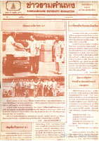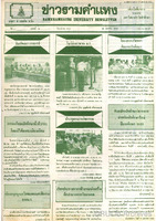 ข่าวรามคำแหง ปีที่ 09 ฉบับที่ 27 ข่าวรามคำแหง ปีที่ 9 ฉบับที่ 27 วันที่ 3 พฤศจิกายน 2522 จำนวน 8 หน้า ราคา 75 สตางค์ หน้า 1 - เรื่องเรียกประกวดราคาจ้างเหมาตัดเย็บเสื้อครุยปริญญา, เรื่องการมอบฉันทะให้บุคคลอื่นลงทะเบียนเรียนแทน, เรื่องการผ่อนผันการรับราชการทหารกองประจำการในยามปกติ สำหรับนักศึกษาประจำปีการศึกษา 2522, เรื่องประกวดราคาซื้อที่ดินเพื่อขยายวิทยาเขต, ปฏิทินการศึกษา ปีการศึกษา 2522 หน้า 2 - ข่าวประกวดแต่งคำกลอนเรื่อง "ความสะอาด", ตำราออกใหม่ในรอบสัปดาห์ โดย เอื้อมพร อุทยาพงษ์, ข่าวจากคณะนิติศาสตร์ โดย อาภัสสร์ จันวิมล, ข่าวโรงพิมพ์ ม.ร. ขาดแคลนกระดาษ, ประกาศจากฝ่ายตำรา, บทความเรื่อง โรงพยาบาล-ธุรกิจเพื่อการแสวงหากำไร? โดย อารีย์รัตน์ อุสาหะวิริยะกิจ หน้า 3 - แบบฟอร์มการลงทะเบียนเรียนทางไปรษณีย์, ระเบียบมหาวิทยาลัยรามคำแหงว่าด้วยการลงทะเบียนเรียนทางไปรษณีย์ พ.ศ. 2522 หน้า 4 - ระเบียบการลงทะเบียนทางไปรษณีย์ (ต่อจากหน้า 3), โรงพยาบาลฯ (ต่อจากหน้า 2) หน้า 5 - บทความเรื่อง เรื่องของการฝึกสอน โดย ทวี ทองสว่าง หน้า 6 - เรื่องคำที่มักสะกดผิด โดย ทองสุก เกตุโรจน์ หน้า 7 - เรื่องคำที่มักสะกดผิด (ต่อจากหน้า 6), เรื่องผู้ใช้ลิฟท์...อ่านตรงนี้ โดย วนิตา เผ่านาค, โรงพยาบาลฯ (ต่อจากหน้า 4) หน้า 8 - เรื่องการขอผ่อนผันการรับราชการทหาร (ต่อจากหน้า 1), เรื่องของการฝึกสอน (ต่อจากหน้า 5), คอลัมน์จากบรรณาธิการ โดย ประทีป วาทิกทินกร -