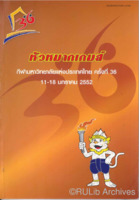 หัวหมากเกมส์ กีฬามหาวิทยาลัยแห่งประเทศไทย ครั้งที่ 36 สารจากเลขาธิการสำนักงานคณะกรรมการอุดมศึกษา -- สารนายกสภามหาวิทยาลัยรามคำแหง -- สารจากอธิการบดีมหาวิทยาลัยรามคำแหง -- รามคำแหง ความสำเร็จที่สัมผัสได้ -- ตราสัญลักษณ์ -- สัญลักษณ์ตัวนำโชค -- แบบเหรียญกีฬามหาวิทยาลัย ครั้งที่ 36 -- ประวัติความเป็นมาการแข่งขันกีฬามหาวิทยาลัยแห่งประเทศไทย -- กำหนดการพิธีเปิดการแข่งขัน -- กำหนดการพิธีปิดการแข่งขัน -- รายนามสถาบันที่เข้าร่วมแข่งขัน -- กำหนดการแข่งขันกีฬามหาวิทยาลัยแห่งประเทศไทย ครั้งที่ 36 -- จำนวนเหรียญรางวัล -- อุปกรณ์การแข่งขันกีฬามหาวิทยาลัยแห่งประเทศไทย ครั้งที่ 36 -- การให้บริการหัวหมาก Internet -- การรายงานผลเว็บไซต์ -- บริการฝ่ายแพทย์และพยาบาลกีฬามหาวิทยาลัยแห่งประเทศไทย ครั้งที่ 36 -- การควบคุมและพิสูจน์สารต้องห้าม -- ศูนย์ประสานงานและผู้ประสานงานที่พักนักกีฬา -- แผนผังที่พักนักกีฬา -- การใช้บริการฝ่ายยานพาหนะ -- ใบขอใช้รถยนต์ -- การใช้บริการฝ่ายโทรศัพท์ -- ศูนย์สื่อมวลชน (Press Center) -- ศูนย์ประสารงานกีฬามหาวิทยาลัยแห่งประเทศไทย -- สีและบัตรประจำตัว -- คณะกรรมการดำเนินการจัดการแข่งขัน -- ประธานและเลขาจัดการแข่งขันกีฬาชนิดต่างๆ -- การการเลี้ยงตอนรับคณะผู้บริหาร/ผู้แทนสถาบัน -- แผนที่สนามแข่งขัน -