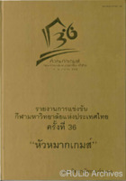 รายงานการแข่งขันกีฬามหาวิทยาลัยแห่งประเทศไทย ครั้งที่ 36 "หัวหมากเกมส์" ประมวลผลแห่งความทรงจำ -- คำขอบคุณจาก ประธานอำนวยการจัดการแข่งขันกีฬาแห่งประเทศไทย --โครงสร้างฝ่ายจัดการแข่งขัน -- ประวัติความเป็นมาการแข่งขันกีฬาแห่งประเทศไทย -- ข้อมูลทั่วไป -- สถาบันที่เข้าร่วม -- ศูนย์ประสานงานการแข่งขันกีฬามหาวิทยาลัยแห่งประเทศไทย ครั้งที่ 36 -- ที่พักนักกีฬา -- ศูนย์สื่อมวลชน -- บัตรประจำตัวนักกีฬา เจ้าหน้าที่ -- คู่มือการแข่งขัน และสูจิบัตรการแข่งขัน -- การให้บริการต่างๆ -- เสื้อผ้าเจ้าหน้า และอาสาสมัครจัดการแข่งขันกีฬามหาวิทยาลัยแห่งประเทศไทย ครั้งที่ 36 -- ข่าวสารการแข่งขัน -- ผู้สนับสนุนการแข่งขัน -
