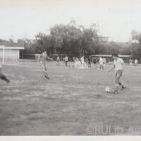 บุคลากรเข้าร่วมแข่งขันกีฬาฟุตบอล ในการแข่งขันกีฬาบุคลากร ณ สนามกีฬา มหาวิทยาลัยรามคำแหง (ไม่ปรากฎปีที่ถ่าย)