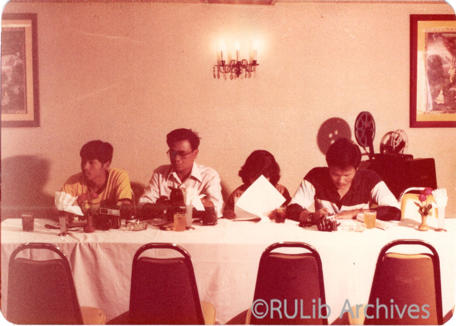 สื่อมวลชน ขณะร่วมฟังงานแถลงข่าวในงานแถลงข่าวการจัดประชุมวิชาการ เรื่อง การจัดกีฬามวลชนในสถานศึกษา เมื่อวันที่ 16 มกราคม 2525 ณ ห้องคอนเฟอร์เรนซ์ โรงแรมนิวอัมรินทร์