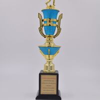 ถ้วยรางวัลพลาสติก 1 เสา (สีฟ้า) ขนาด 4.4 x 18.5 นิ้ว