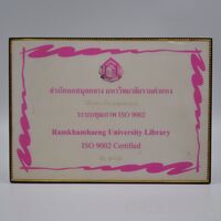 สำนักหอสมุดกลาง ได้รับใบรับรองระบบคุณภาพ ISO 9002:1994 (Ramkhamhaeng University Library ISO 9002 Certification By BVQI) (Bureau Veritas Quality International) เมื่อวันที่ 22 กันยายน 2543