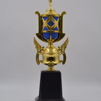 - ถ้วยรางวัลพลาสติก 1 เสา (สีทอง-น้ำเงิน) ขนาด 4.5 × 17.5 นิ้ว