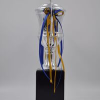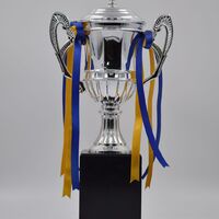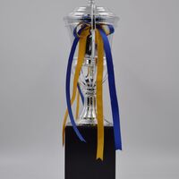 ถ้วยรางวัลชนะเลิศ ประเภททีม 3 คน การแข่งขันโบว์ลิ่งการกุศล โรงเรียนสาธิตมหาวิทยาลัยรามคำแหง (ซ้าย)