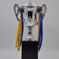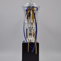 ถ้วยรางวัลชนะเลิศ ประเภททีม 3 คน การแข่งขันโบว์ลิ่งการกุศล โรงเรียนสาธิตมหาวิทยาลัยรามคำแหง (ขวา)