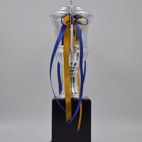 ถ้วยรางวัลชนะเลิศ ประเภททีม 3 คน การแข่งขันโบว์ลิ่งการกุศล โรงเรียนสาธิตมหาวิทยาลัยรามคำแหง (หน้า)