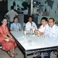บุคคลในภาพ ลำดับที่ 2 นับจากซ้าย คือ ศาสตราจารย์ ดร.ธรรมนูญ โสภารัตน์ อธิการบดีมหาวิทยาลัยรามคำแหง ลำดับที่ 4 คือ รองศาสตราจารย์พรชัย สุนทรพันธุ์ และ ลำดับที่ 5 คือ รองศาสตราจารย์จรินทร์ ธานีรัตน์ เยี่ยมชมร้านกาชาด ม.ร. ในงานกาชาดของสภากาชาดไทย ประจำปี 2531 ระหว่างวันที่ 3-9 เมษายน 2531 ณ สวนอัมพร